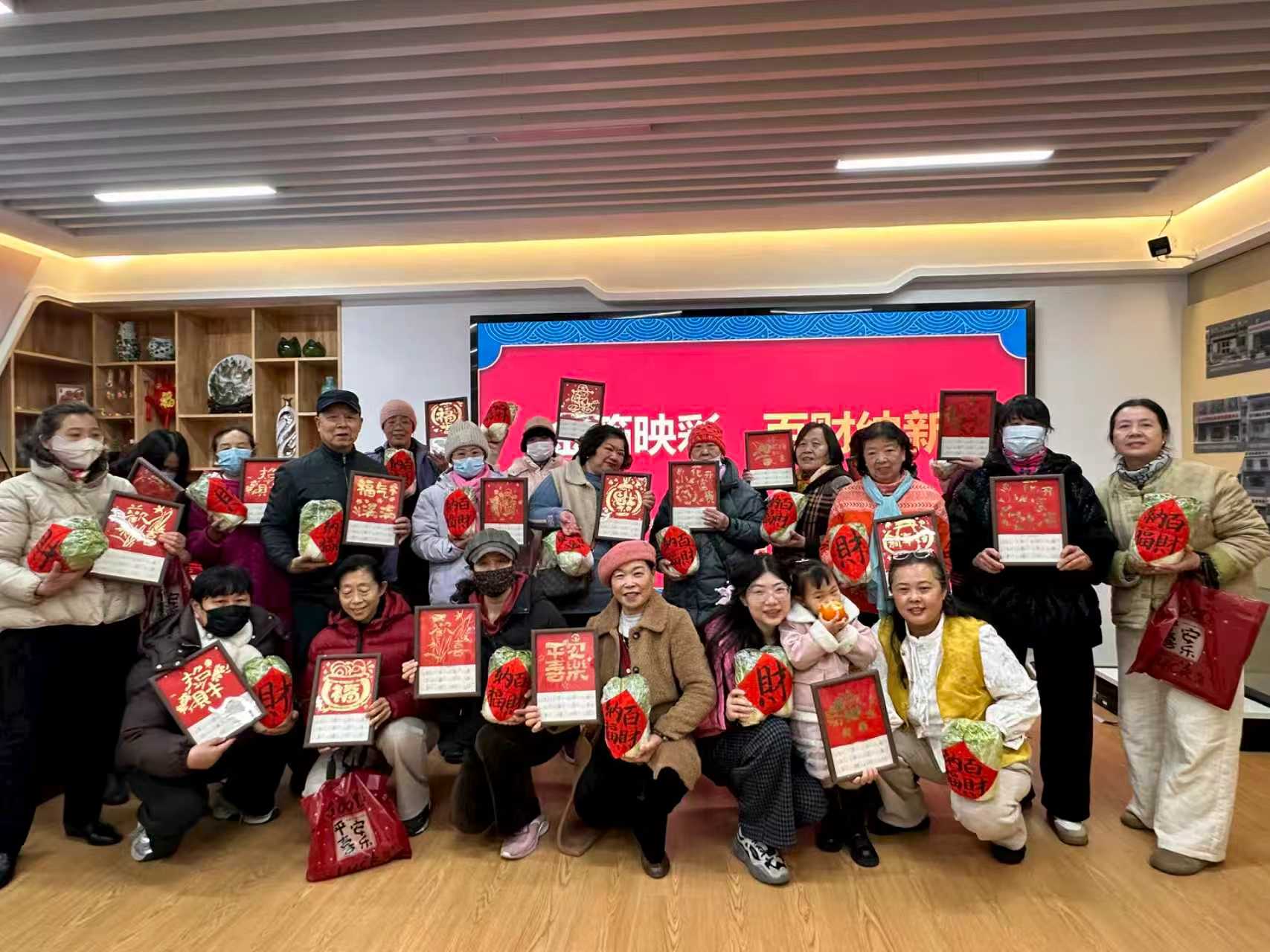 活动现场,居民们在专业老师指导下,兴致盎然地体验了金箔日历制作。大家细心贴覆、精心勾勒,将熠熠生辉的金箔与实用日历相结合,在动手创作中感受传统技艺的魅力,制作出一份份独具匠心、寓意吉祥的新春纪念品。活动同时,中心还为前来参与的居民准备了寓意“百财纳福”的大白菜,将“百财聚来,福气盈门”的美好祝愿送到每一位居民手中,现场欢声笑语,暖意融融。