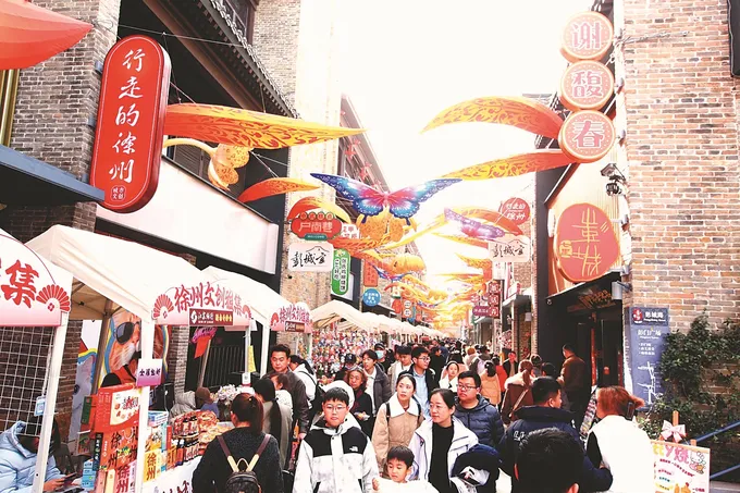2月21日,徐州文旅部门发布数据,据初步监测,2月15日至20日“彭城七里”共接待游客107.9万人次、游客消费2.81亿元,较节前的2月9日至14日分别增长14.6%和14.2%。