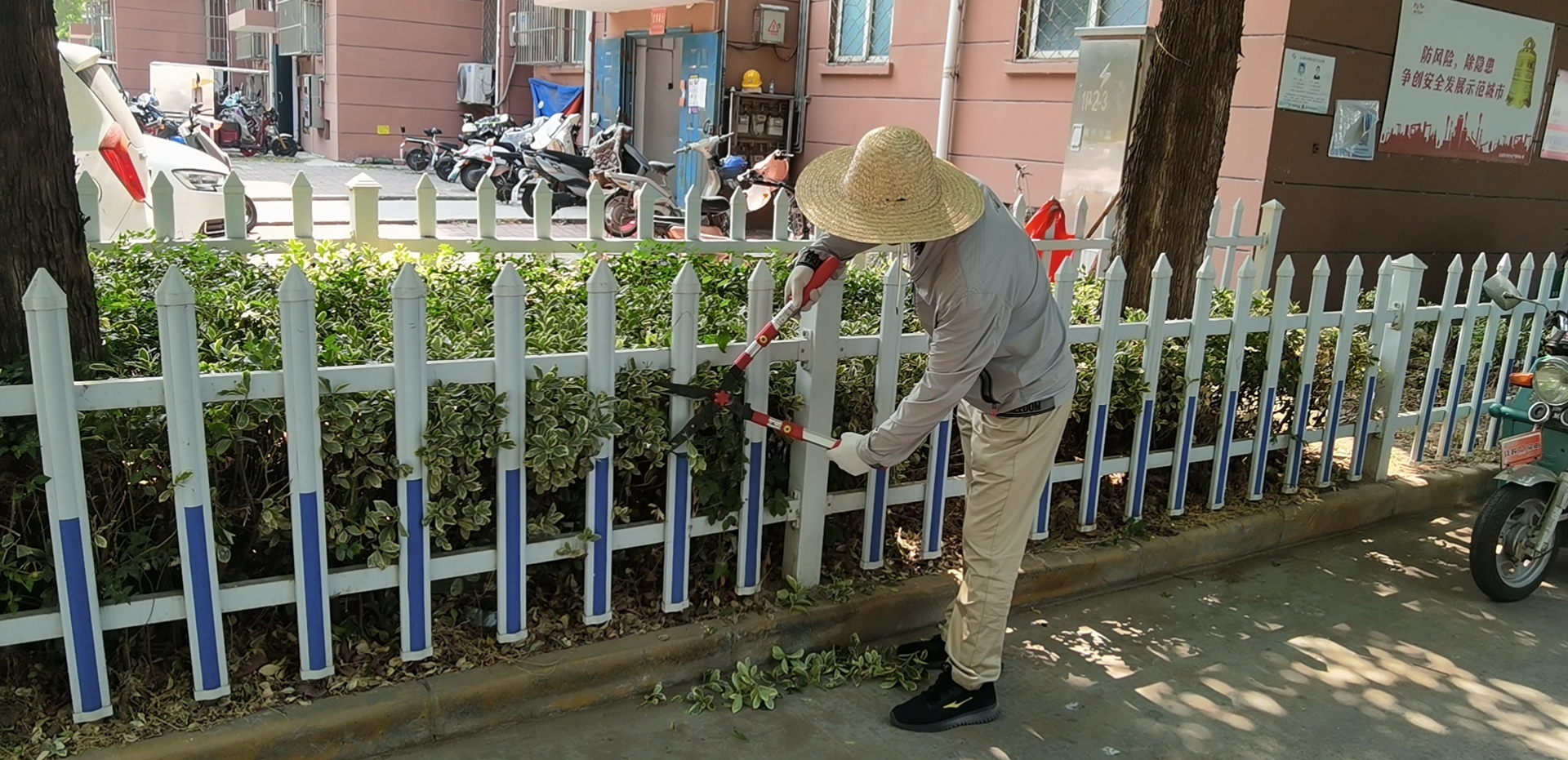 打扫小区卫生、给小区绿化带花木进行修剪、对社区居民进行环保宣传、文明劝导