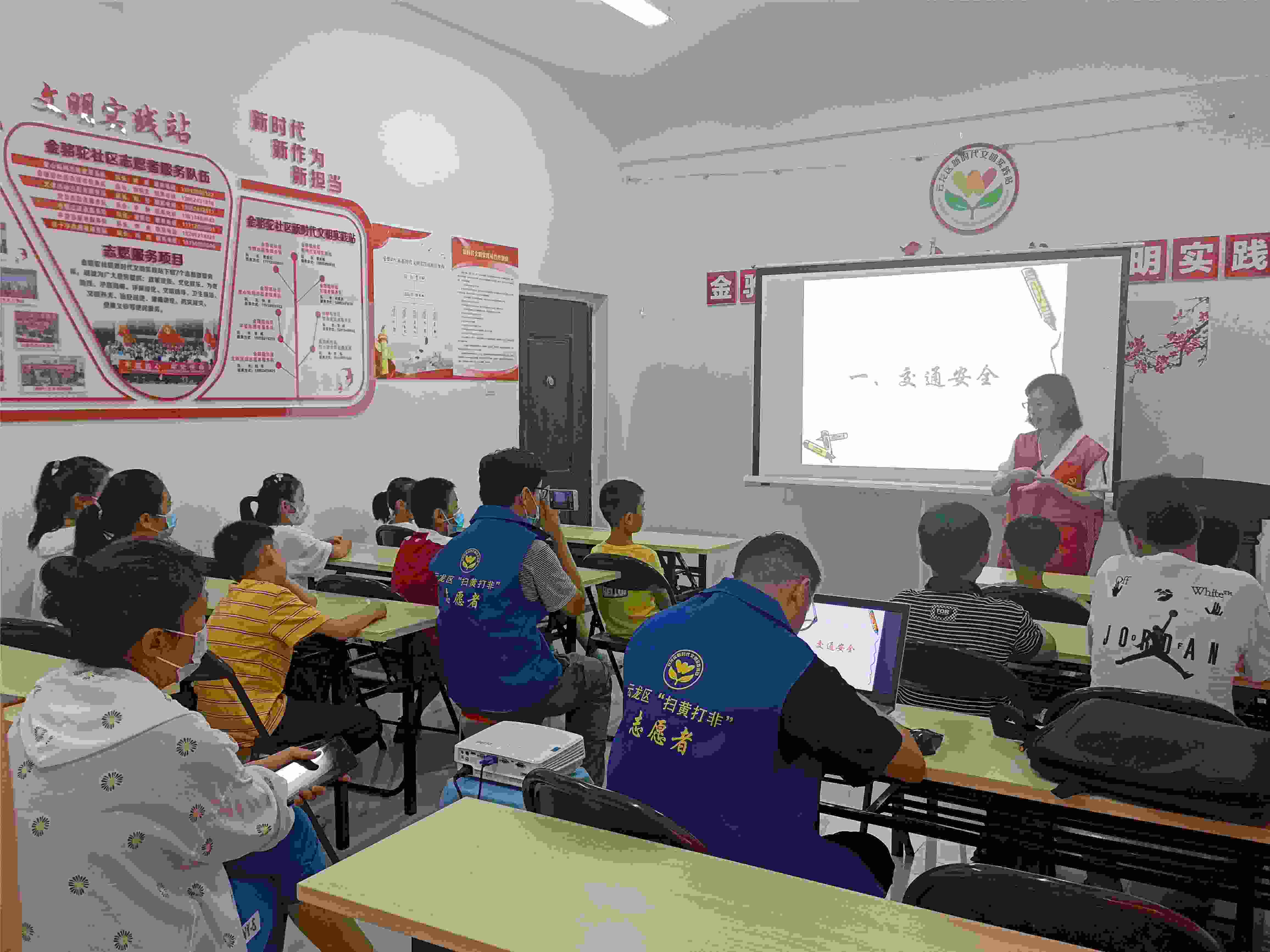 王老师的安全教育课讲的生动活泼,小朋友们听的聚精会神,回答问题时都很踊跃,积极性很高。活动结束后,社区给每个小朋友发了一个本子和一支笔作为小礼品,此次活动增强了小朋友们的安全意识,丰富了他们的假期生活,学到了很多课本上学不到的知识。