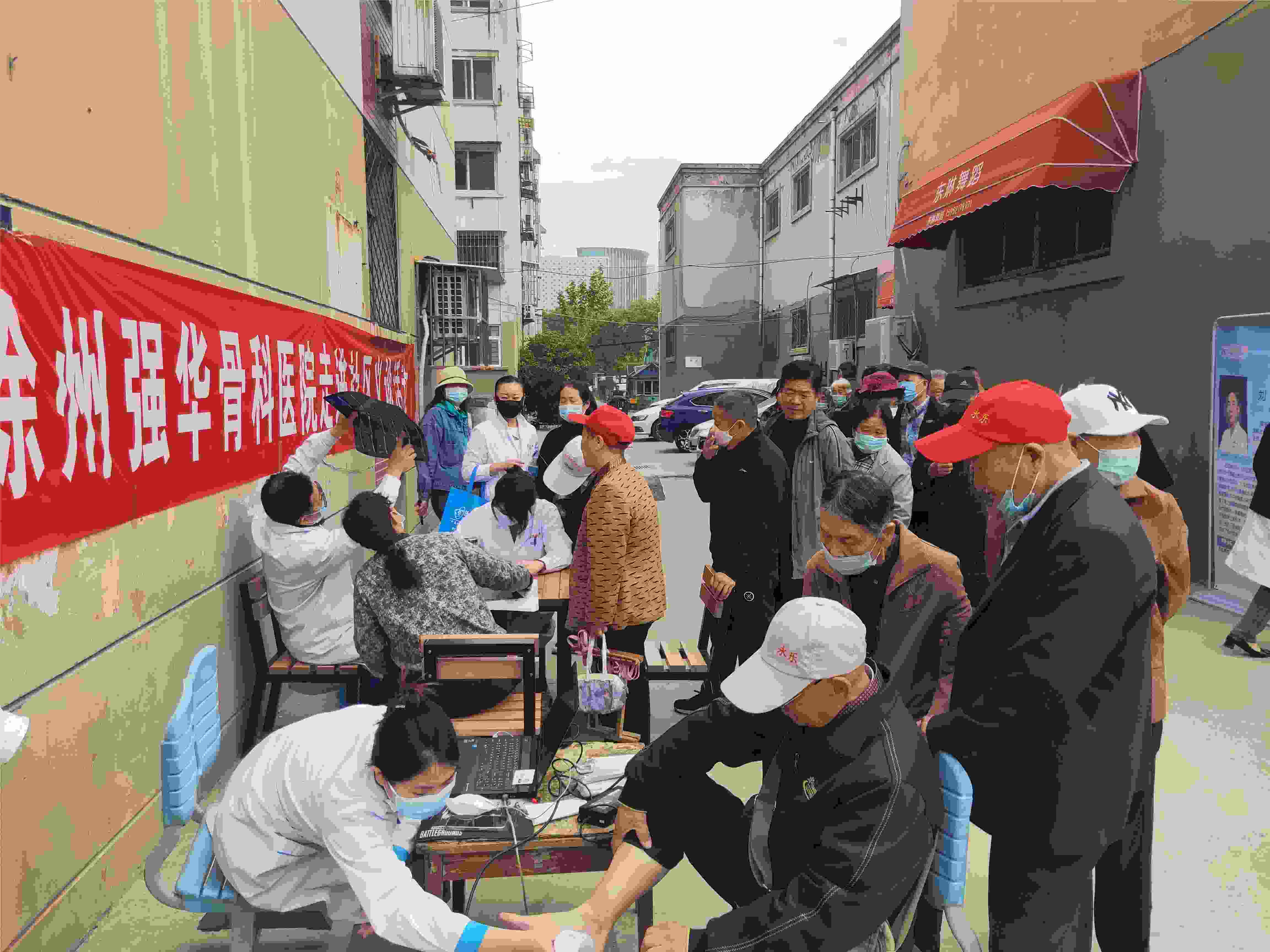 2023年4月28日上午,民富园社区联合徐州强华骨科医院在民富园老年大学广场开展医院进社区义诊活动。骨科专家主任带队参与此次义诊活动,为居民有疼痛不适的解疑答惑。