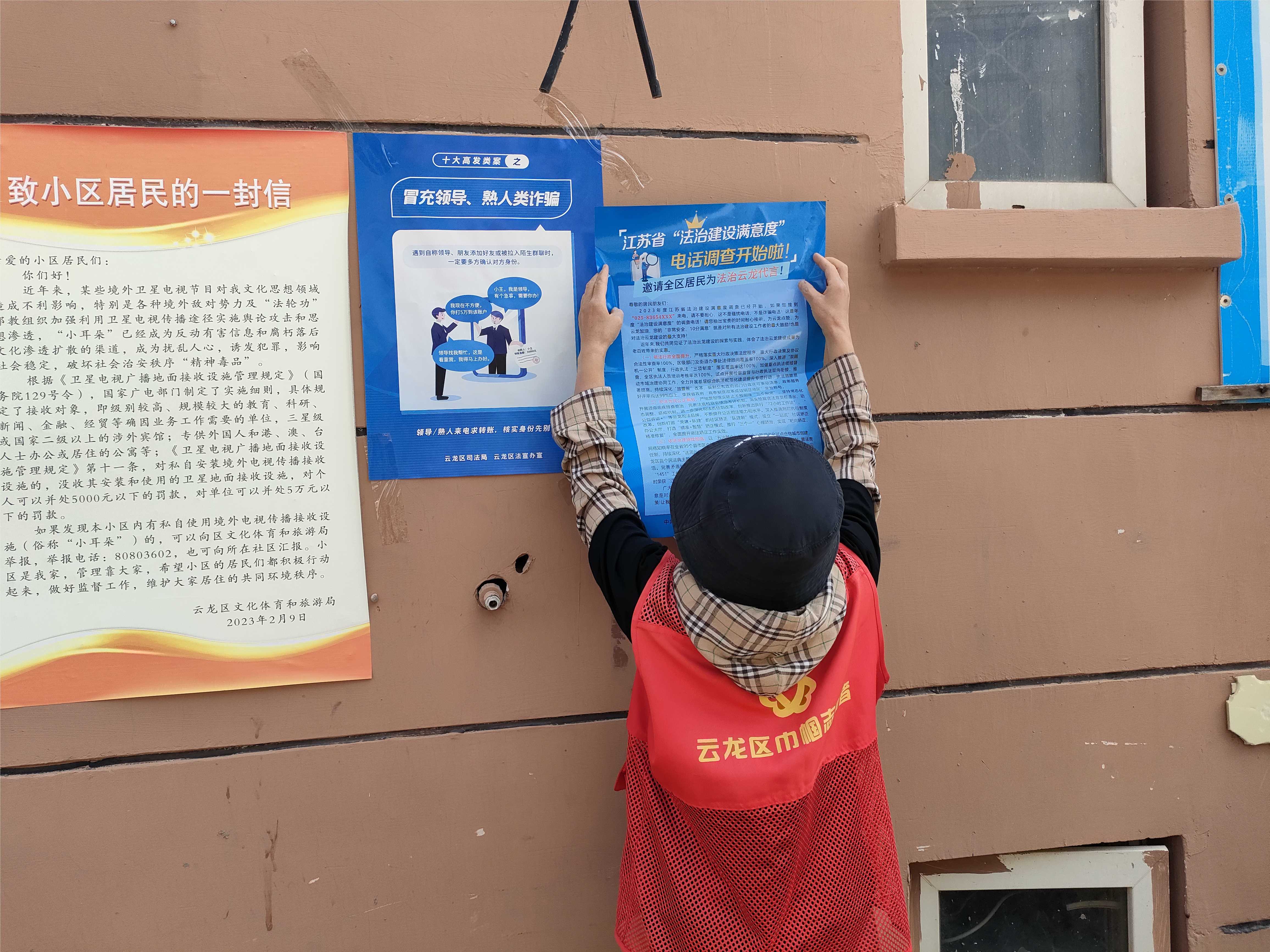 社区通过张贴海报、发放宣传单等形式,社区提醒居民如果看到“025-83654XXX”号段来电,请不要拒绝或提前挂断这是江苏省法治建设满意度调查电话,接听评价代表了云龙区居民的意见,宣传活动号召大家作出诚恳的评价,促进法治文明社区建设。