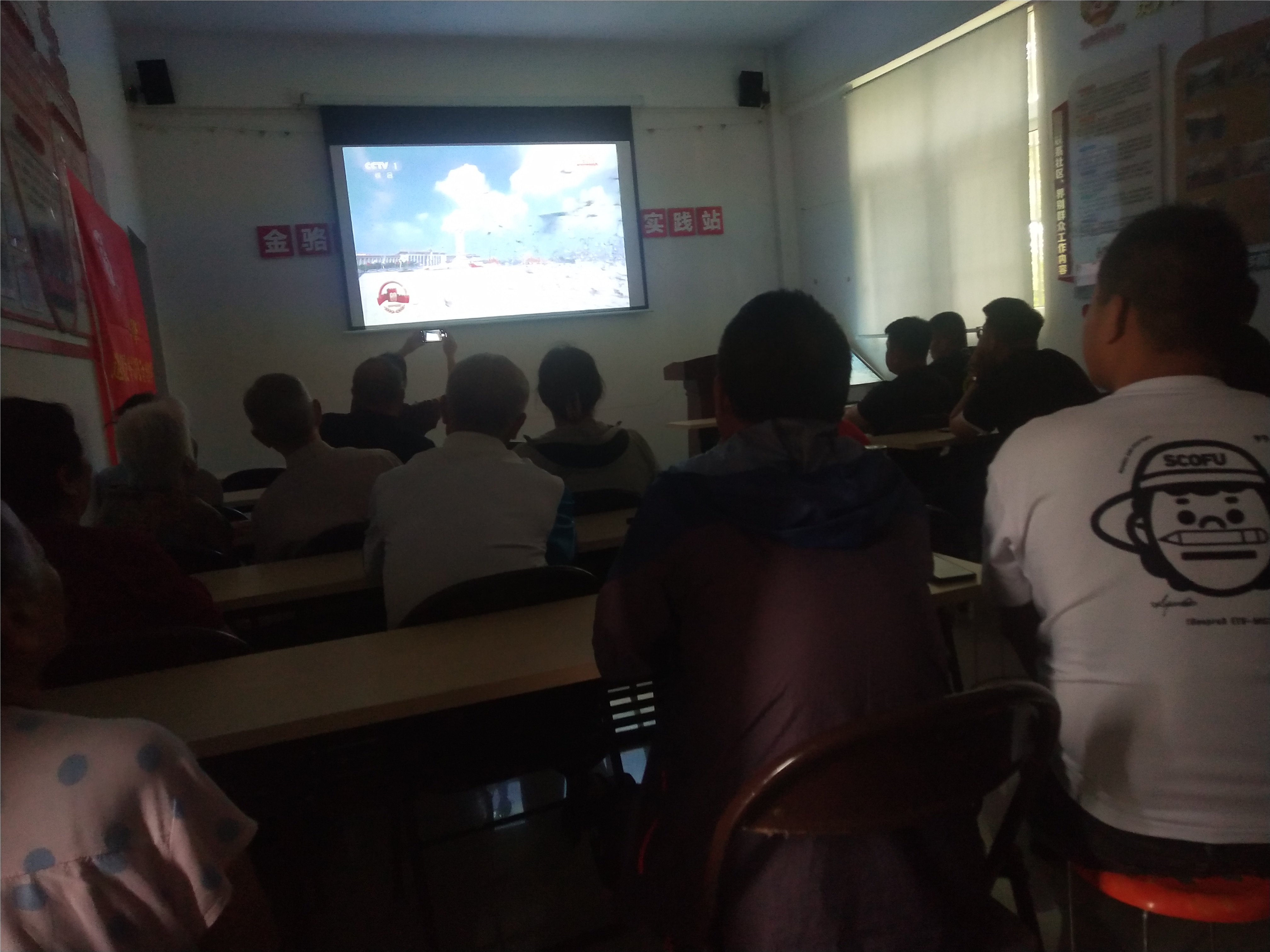 为纪念中国人民抗日战争暨世界反法西斯战争胜利80周年,2025年9月3日上午9点金骆驼社区组织党员群众集中观看阅兵仪式。