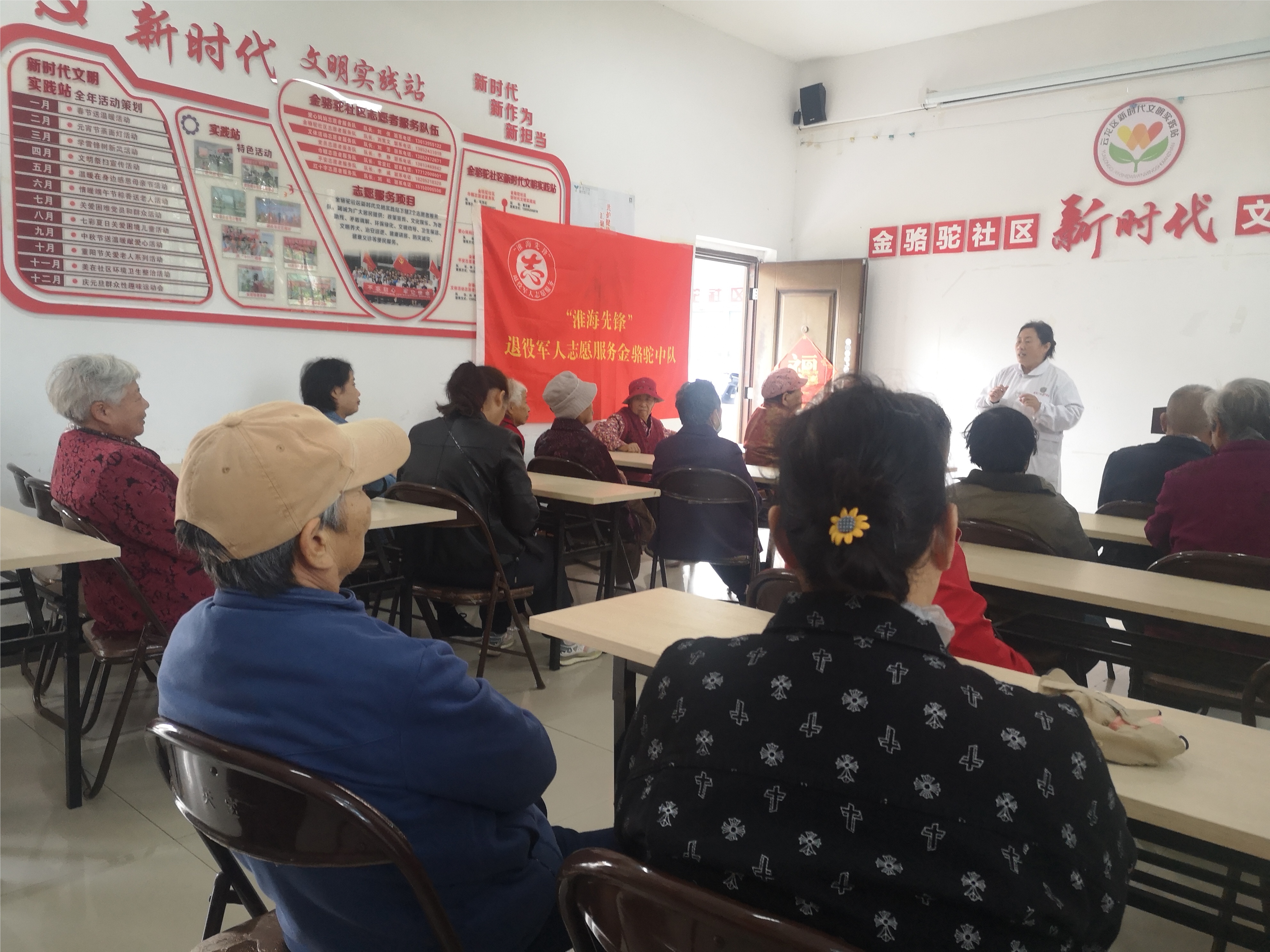医护人员给社区居民贴敷养肺贴的同时,为大家进行中医健康知识普及讲座,深入浅出介绍了肺功能新陈代谢和秋季养肺注意事项。