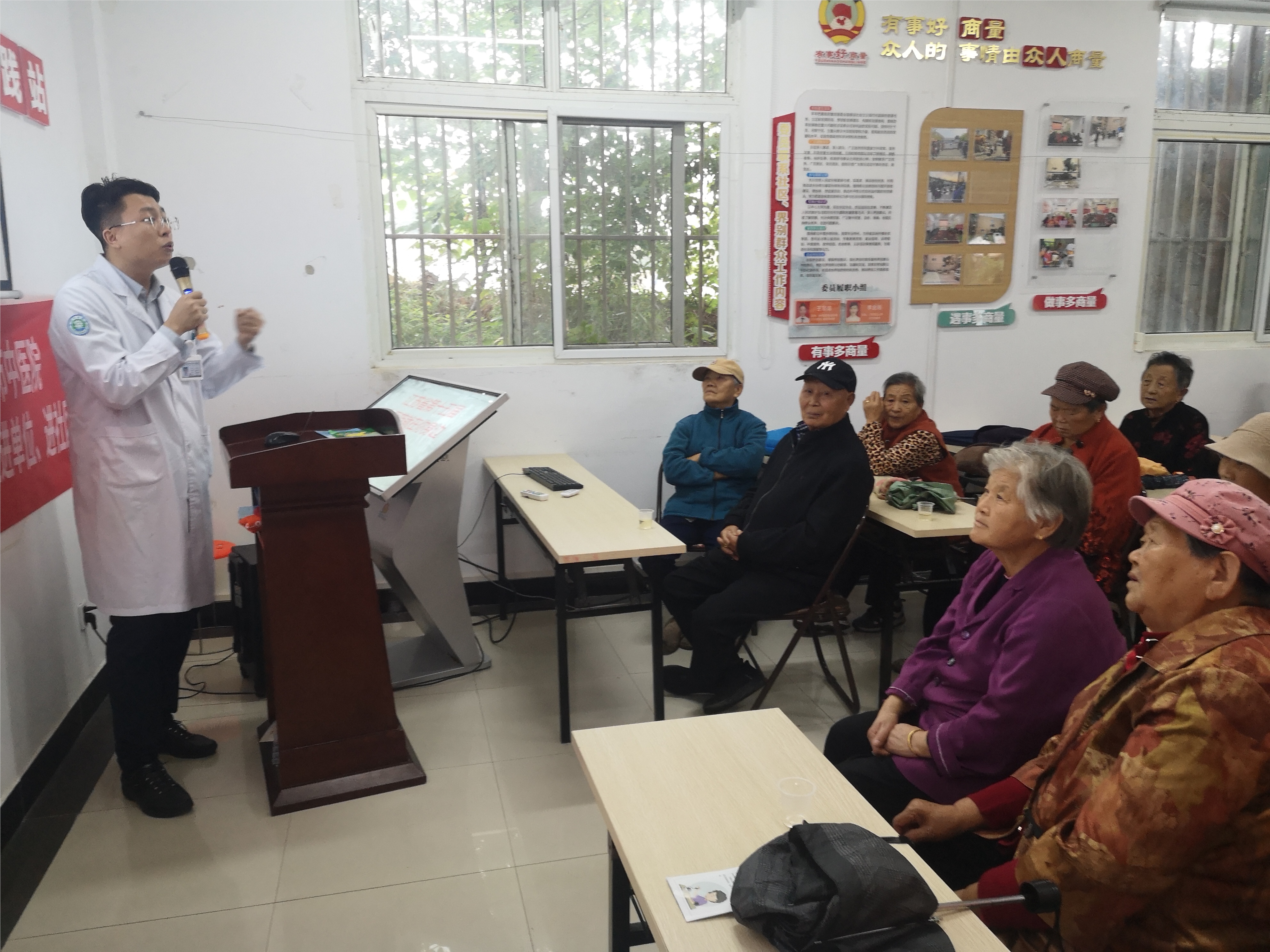 活动邀请了中医院的两名主治医师,夏莉主任为大家详细分享了老年人常见高血压的防治方法以及骨质疏松的预防知识,嘱咐社区老人保持乐观心态,健康饮食,经常锻炼,安享幸福晚年。