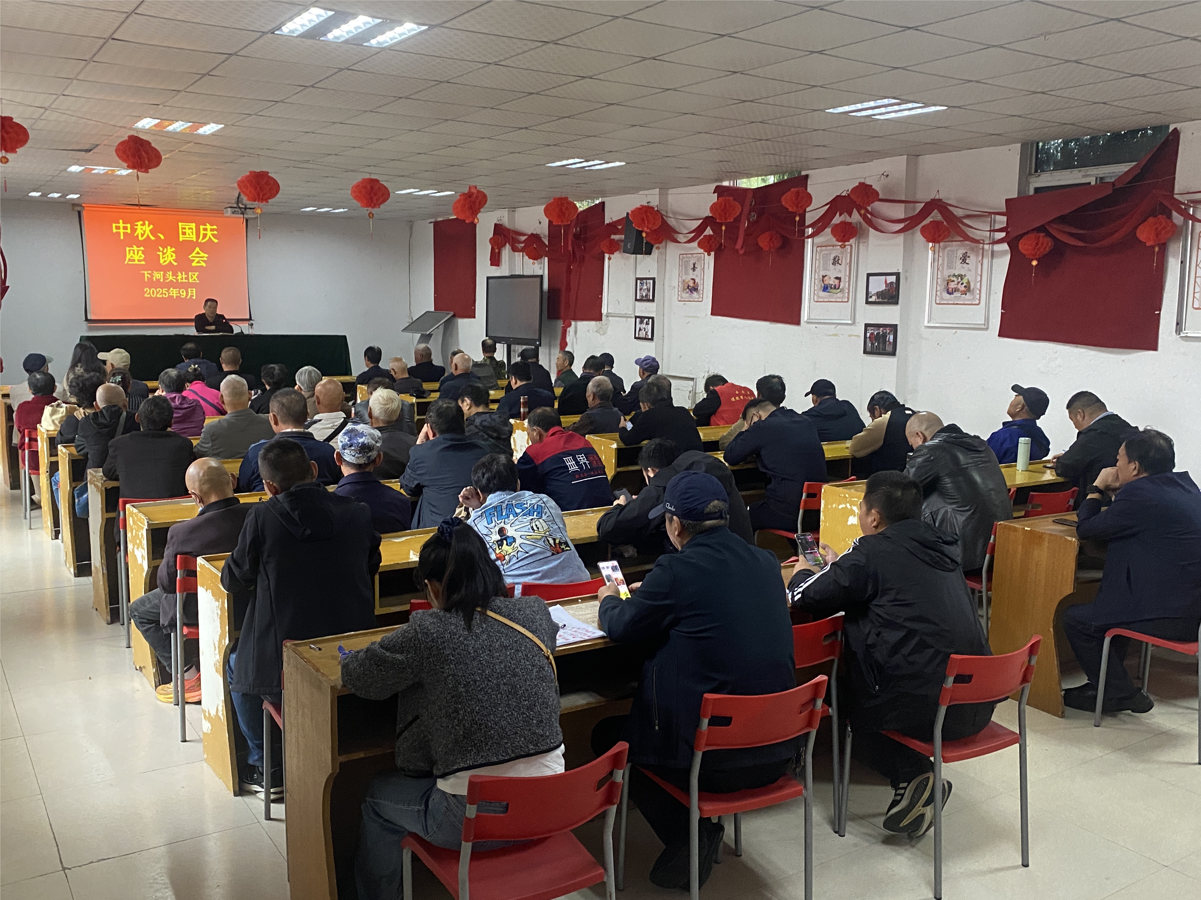 中秋佳节将至。9月27日下河头社区召开“中秋欢聚、国庆畅谈”主题座谈会,由社区党总支书记郭新建主持,社区党员代表、居民代表参会。 会上,郭书记首先代表社区两委班子对近期有关社区建设发展的各项工作,进行详细汇报。座谈会围绕经济发展、民生福祉及目前居民关心的热点话题等多方面进行讨论,参会代表积极参与、畅所欲言,指出目前社区工作存在的不足之处,为社区下一步发展提出了很好的意见和建议。现场一片温馨、喜庆、欢乐、祥和的节日气氛。最后,郭书记代表社区全体工作人员向居民献上节日祝福,祝愿大家:“阖家团圆、幸福美满、身体健康、国泰民安!” 此次座谈会,不仅宣传了中华民族传统节日文化,还加强了居民的爱国情怀,对进一步完善社区民主管理起到积极作用,有效推动社区和谐发展。