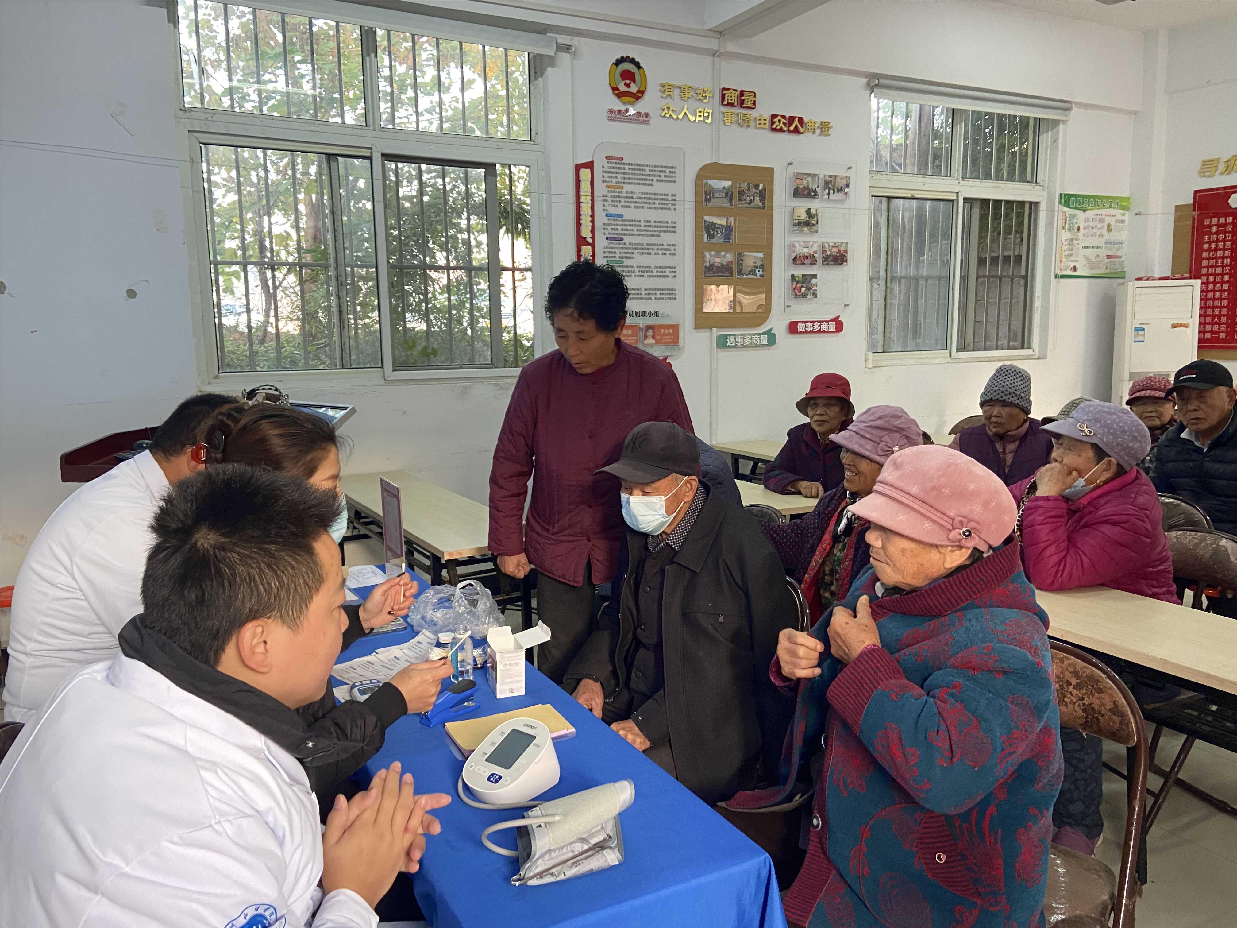 活动为老人们提供测血压和健康咨询指导服务,并赠送六个鸡蛋作为小礼物,活动受到居民欢迎。